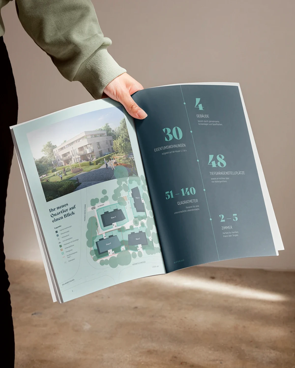 Konzeption & Texte, Naming, Logo & Projekt-CI; Presales-Phase: Presales-Website, Bauzaunbanner; Sales-Phase: Exposé, Sales-Website, Grundriss-Layout, Grafiken & Illustrationen, Fotos